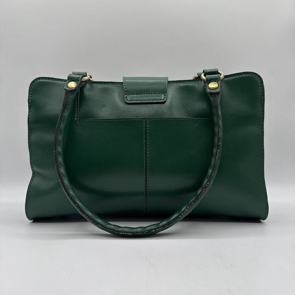 monogram buckle strap front flap pocket satchel